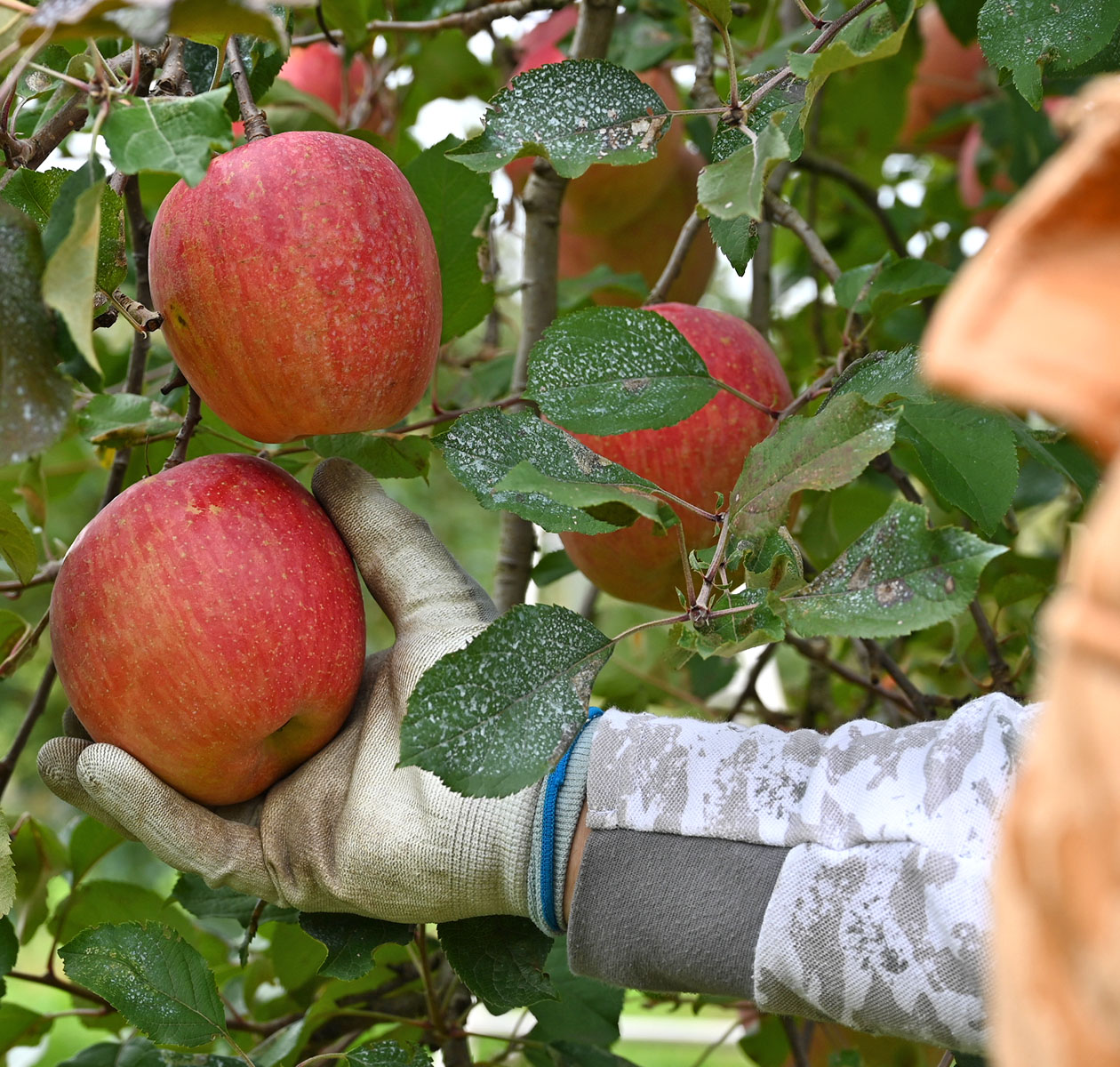 収穫したりんごと梨は、みずみずしく、自然の甘さがぎゅっと詰まった逸品です。